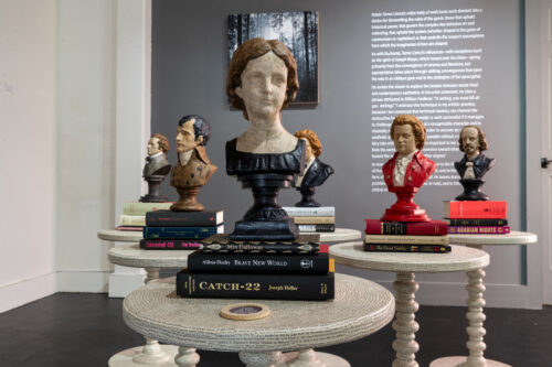 “The Books are Burning,” Rubén Torres Llorca, 2025. A la entrada de la galería, la obra que le da título a la muestra introduce al visitante de inmediato en el tema de la censura. Fotografía: cortesía de Aluna Art Foundation.