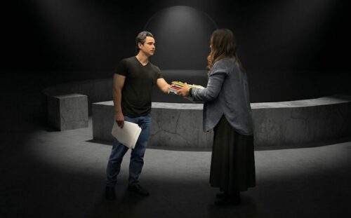 Los actores Laura Ramos y Daniel Romero interpretan a Ella y El Autor en “Variaciones para un tema insignificante” (fotografía de Alexa Kuve, cortesía de Arca Images).