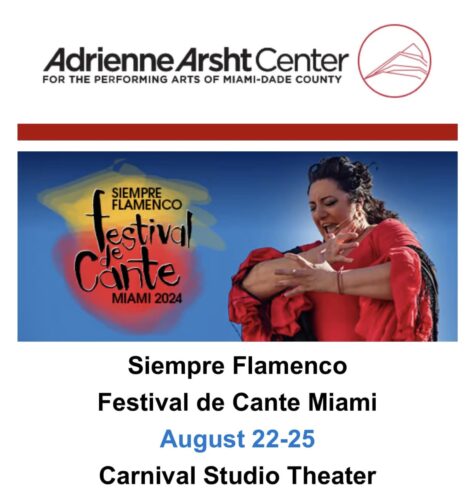 COMPRA DE BOLETOS: 305-949-6722 o en https://www.arshtcenter.org/tickets/2023-2024/arsht-center-presents/siempre-flamencos-festival-de-cante-miami/