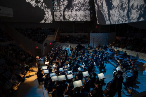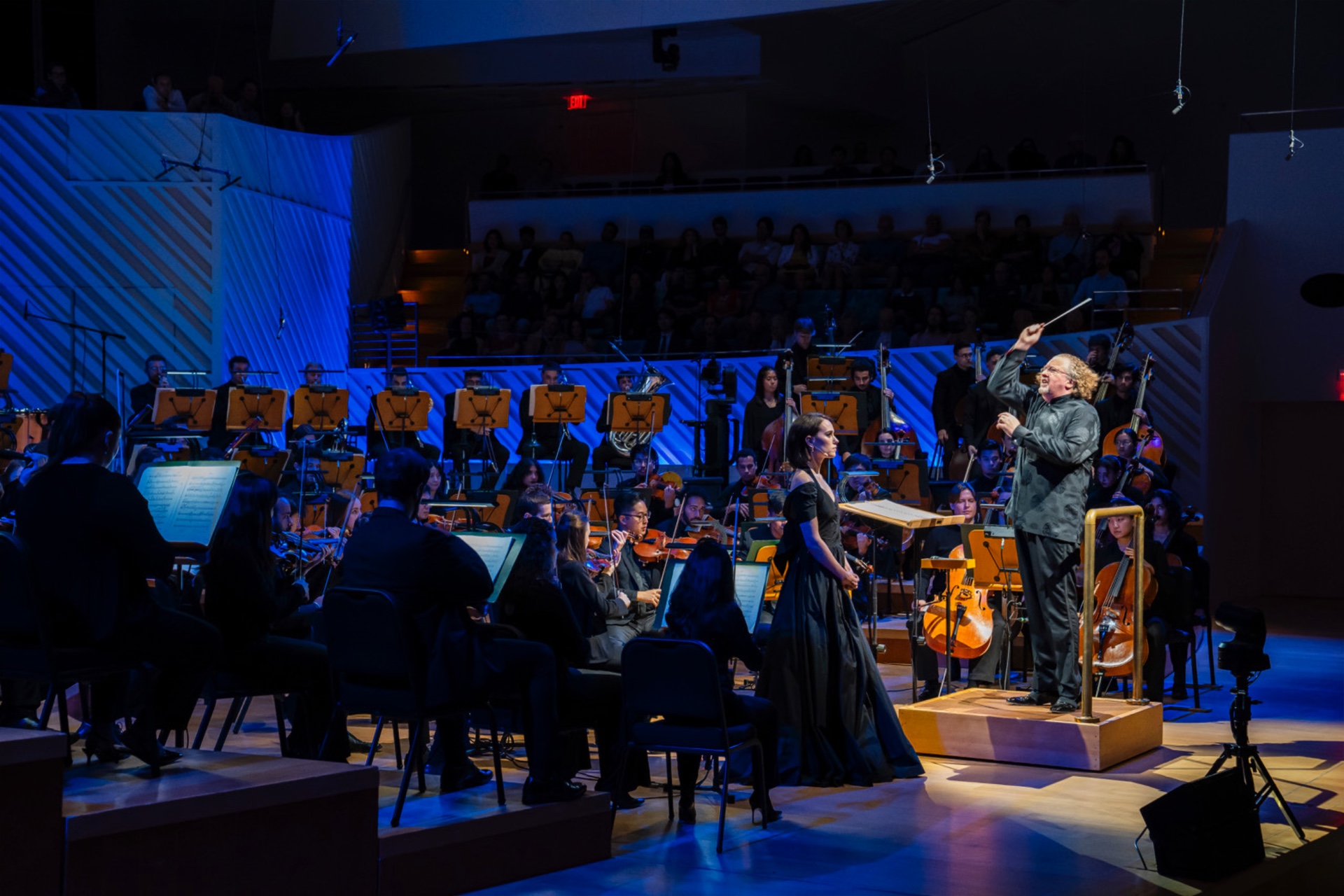 Stéphane Denève y Daisy Ridley en “Del diario de Ana Frank”, de Michael Tilson Thomas. Fotografía: New World Symphony (cortesía).