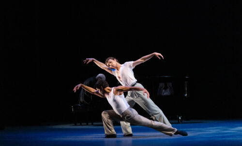 La música arreglada para danza e interpretada al piano por Francisco Rennó en “Sentimiento”, coreografía de Durante Verzola (MCB/Arsht Center). En la foto, Alexander Kaden y Jordan Martínez en “San Francisco El Grande” una de las secciones del ballet. Fotografía: Alexander Iziliaev (cortesía de Miami City Ballet)