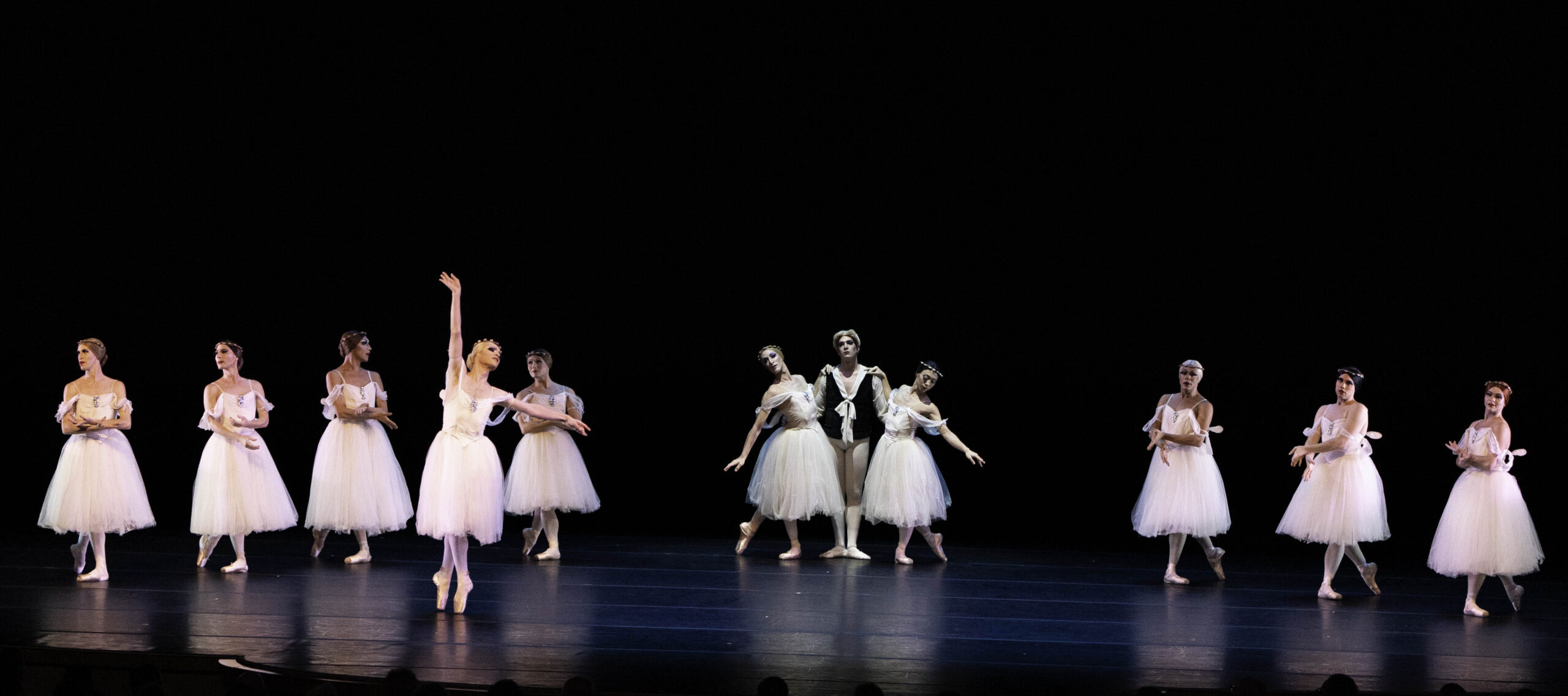 Los bailarines de Les Ballets Trockadero en “Les Sylphides”, la noche del jueves 11 de enero en el Knight Concert Hall del Adrienne Arsht Center de Miami. Fotografía: Daniel Azoulay (cortesía de Adrienne Arsht Center)