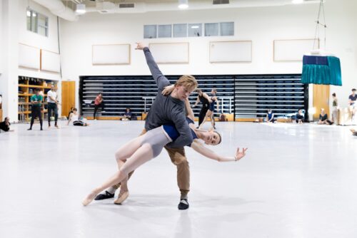 Chase Swatosh y Samantha Hope Galler ensayando “Pictures at an Exhibition”, coreografía de Alexei Ratmanksy. Fotografía: Alexander Iziliaev (cortesía de Miami City Ballet).