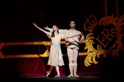 Como Kitri, en el ballet “Don Quijote”, junto a Juan Pablo Ledo, primer bailarín del Ballet Estable del Teatro Colón. “La primera vez que desempeñé este rol principal fue a los 17 años, en España. Es un ballet que me ha acompañado desde el principio”, relata Macarena Giménez. Fotografía: Máximo Parpagnoli (cortesía del archivo personal de Macarena Giménez).
