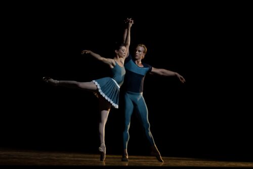 Macarena Giménez y Chase Swatosh, bailarines principales de Miami City Ballet, en “Year of The Rabbit”, coreografía de Justin Peck, el viernes 17 de octubre de 2025, en el Arsht Center. Fotografía: cortesía de Miami City Ballet.