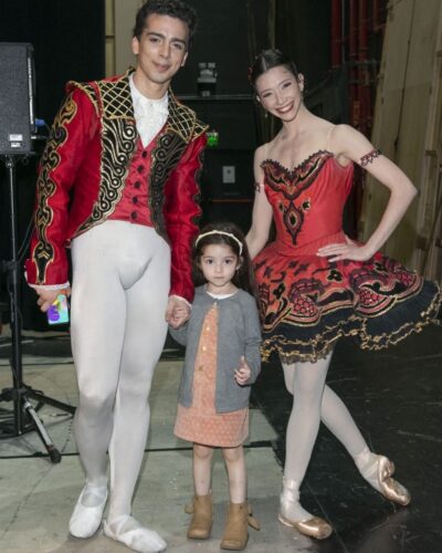 “Con mi marido, Maximiliano Iglesias, y nuestra hija, Emma, después de un show”, nos dice Macarena Giménez, bailarina principal de Miami City Ballet. Fotografía: archivo personal de Macarena Giménez (cortesía).