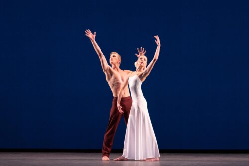 Chase Swatosh y Dawn Atkins en “Diversion of Angels”, coreografía de Martha Graham. Fotografía: Alexander Iziliaev (cortesía de Miami City Ballet).