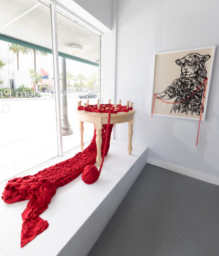 The Contemporary Art Modern Project (CAMP) in North Miami presents “Under The Red Tent,” a collaborative fiber exhibition organized with Red Thread Art Studio Miami. Founded by fiber artist Aurora Molina, the studio serves as both a creative workspace and cultural hub for artists exploring textile-based practices. Inspired by Anita Diamant’s novel “The Red Tent,” the exhibition reimagines the gallery as a contemporary gathering space rooted in storytelling, shared experience, and community. More than twenty artists contribute works using thread and textile to explore themes of memory, identity, and connection. In keeping with CAMP’s emphasis on participation, the exhibition also features an evolving oral-history component generated through performances, workshops, and community gatherings. “Under The Red Tent” opened with an International Women’s Day brunch on Sunday, March 8 and remains on view through Saturday, April 25 in North Miami.