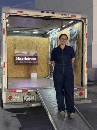 “I first heard about the Bang Bus in middle school, and I feel like that’s probably most people’s experience,” says Ferrer. “And I think about how present and prevalent sex culture is in Miami, and how it’s almost inevitable to be aware of it, even, and to grow up around it. So I wanted to make a piece that kind of talked about that.”