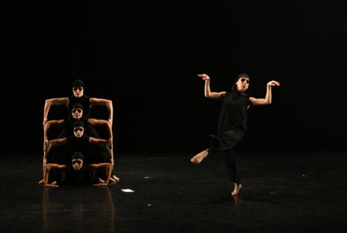 Dancers from the New World Dance Ensemble in “The Envelope,” by David Parsons. (Photo by Juan Cabrera, courtesy New World Dance Ensemble)