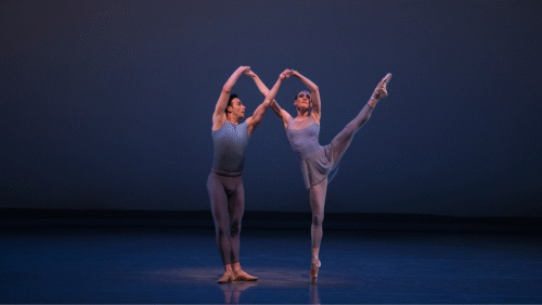 Tricia Albertson, right, performed for 26 years with MCB. Here’s she’s shown in “Chutes and Ladders” with with Renato Penteado, choreographed by Justin Peck. Albertson now serves as rehearsal director for the season-opening”Peck: In Motion.” (Photo by Alexander Iziliaev)