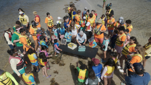 Poet Oscar Fuentes surrounded by kids from Shake-A-Leg Miami in a scene from “Poetry City.” (Photo courtesy of Miami Film Festival)