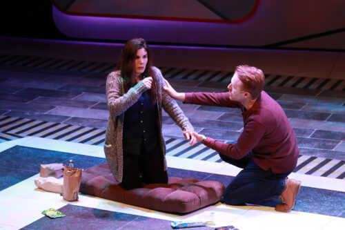 Allie Beltran as Megan and Ryan Didato as her husband, Scott, in “The Girl On The Train” at Actors’ Playhouse, Coral Gables. (Photo by Alberto Romeu/courtesy of Actors’ Playhouse)
