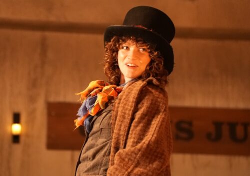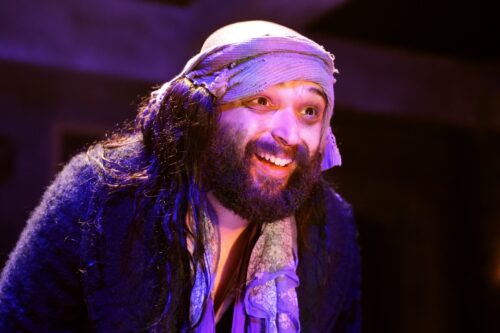 He also meets Nancy (Ashlee Waldbauer), a vibrant angel who’s something of a mother to Fagin’s gang, and her violent lover Bill Sikes (Montoto in a dual role), a ruthless devil who steals items for Fagin to fence and plays the abusive tyrant with the woman he loves.