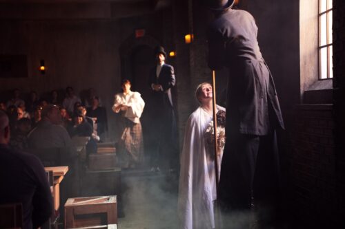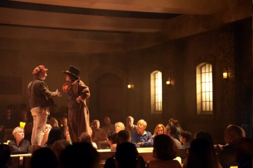 Immersive theater is the thing now, and it may not be to everyone’s taste.  Maybe you don’t want to watch Bill Sikes attacking Nancy right in front of you – literally.  Maybe constantly shifting your focus to different parts of the room (sometimes, the action may be behind you or off to the side) will start to annoy you.