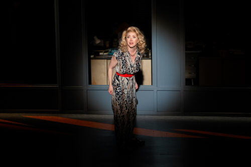 Caitlin Clouthier as Edna Buchanan in Buchanan’s signature pantsuit look by costume designer Celeste Jennings. (Photo courtesy of Morgan Sophia Photography)
