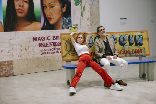 In Harley Elias’s “Pump and Dump,” inspired by the work of Los Angeles artist Alfonso Gonzalez Jr., an art and bitcoin Dealer (Carlos Orizondo) is pitted against a Buyer (Margery Lowe) who seems to be an eager-to-please mom. As we learn before she arrives, he’s ruthless and foul-mouthed. He changes his tune – or maybe partially mutes his true nature – once the red-haired dynamo arrives. They haggle and try to make a deal, then do so, only to have the Dealer’s world explode.