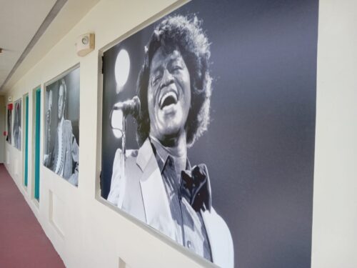 At the Hampton House, the walls are adorned with portraits of Black icons, including James Brown, Harry Belafonte, Aretha Franklin, Marvin Gaye, Ella Fitzgerald, and Stevie Wonder. (Photo by Jonel Juste)
