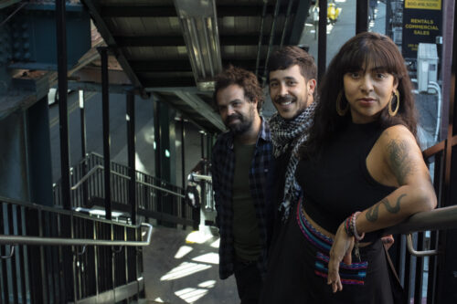 From left, Isabel Ramirez Ocampo, vocals, guitar; Miguel Velásquez Matijasevic, bass; Camilo Bartelsman, drums. La Muchacha and her trio, El Propio Junte.“ (Photo courtesy of the artist)