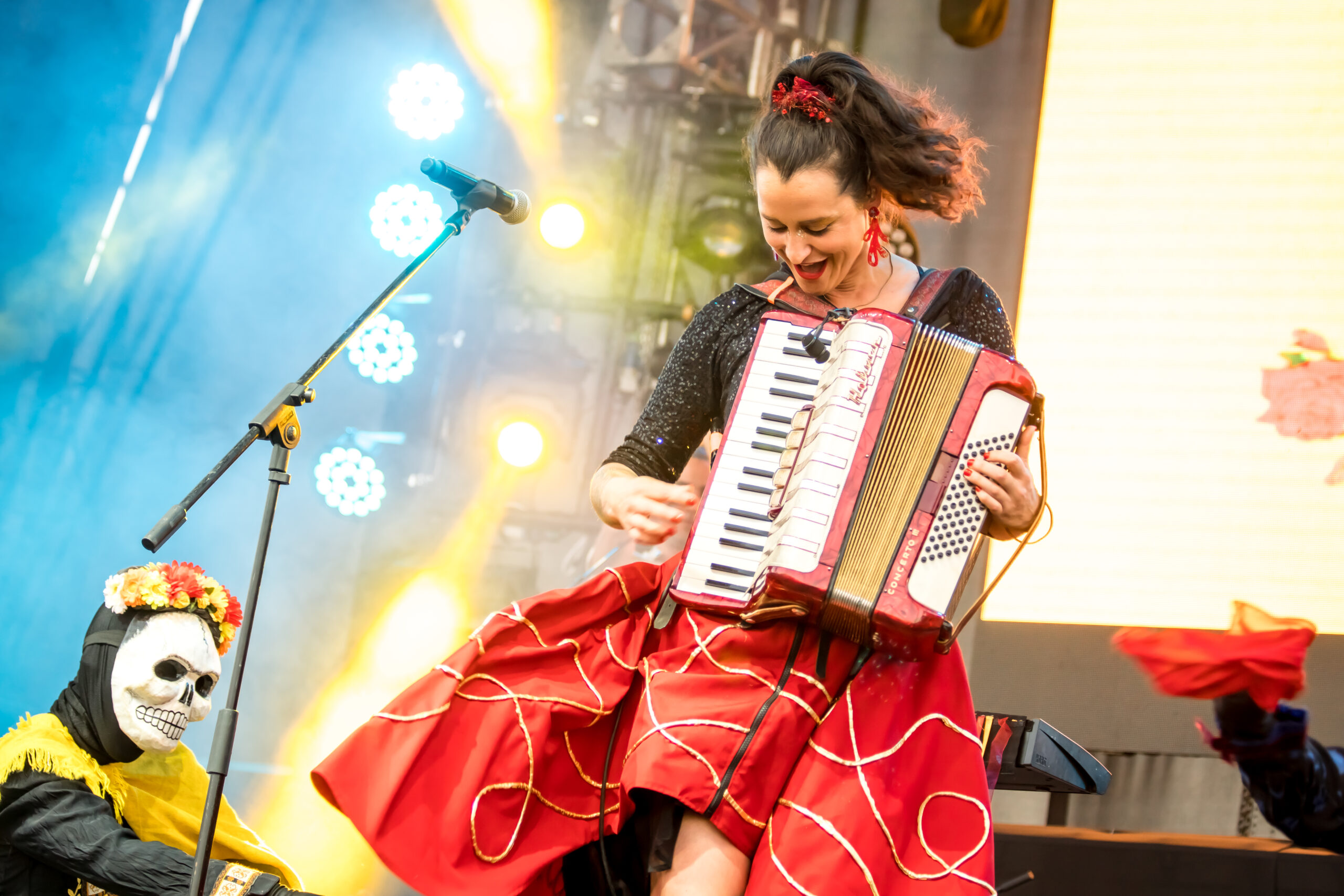At the Miami Beach Bandshell, Ilabaca will be performing on vocals, piano, and accordion, accompanied by a sextet version of her band, Fauna, featuring congas, brass, guitar, bass, and drums.