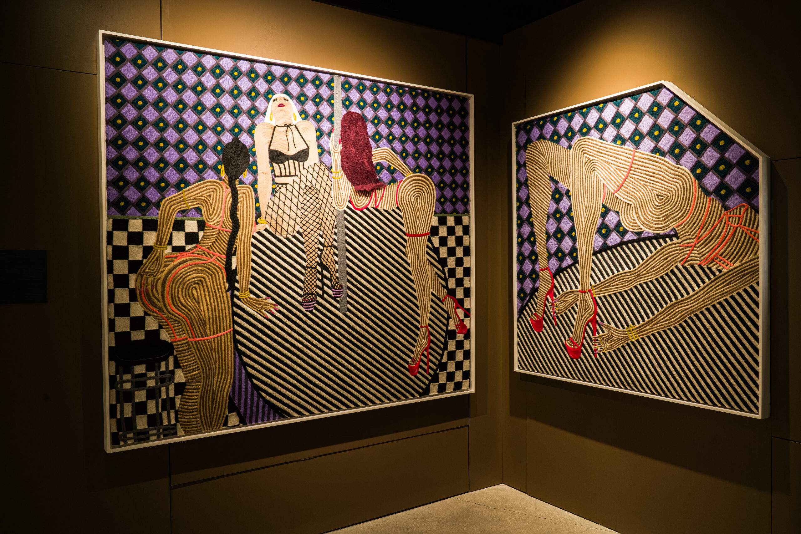 Fabric artworks by Cheryl Pope depict Miami’s strippers. (Mateo SeZa/SeZa Studios)