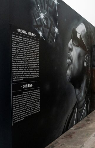 Another standout contribution to the exhibition is the mural by Miami-based artist and illustrator Disem. The artwork pays tribute to Clive Campbell, renowned by his stage name DJ Kool Herc, credited as one of the pioneers of hip-hop music.