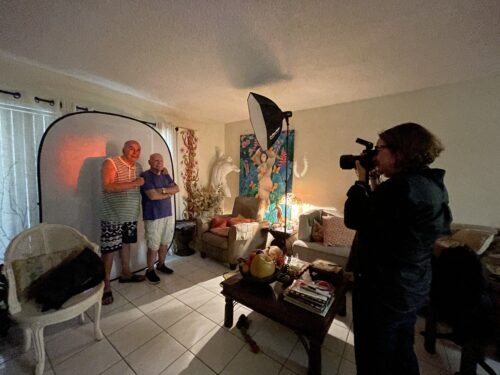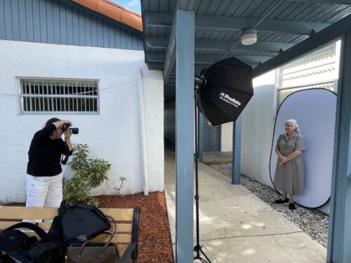 Clara Toro photographing her subjects for the “Voices of Miami” permanent exhibition at the Freedom Tower. (Photo courtesy of Miami Dade College)